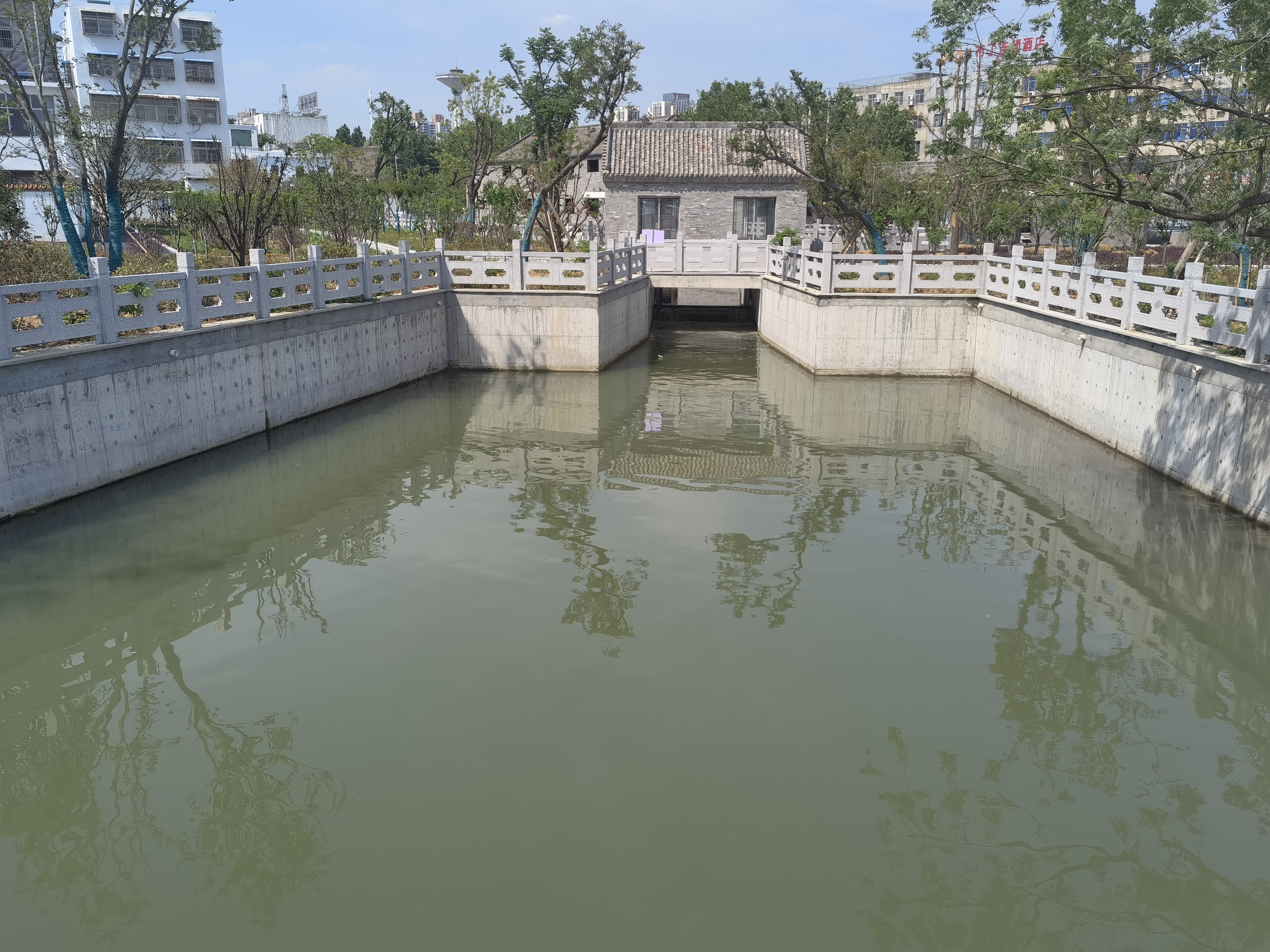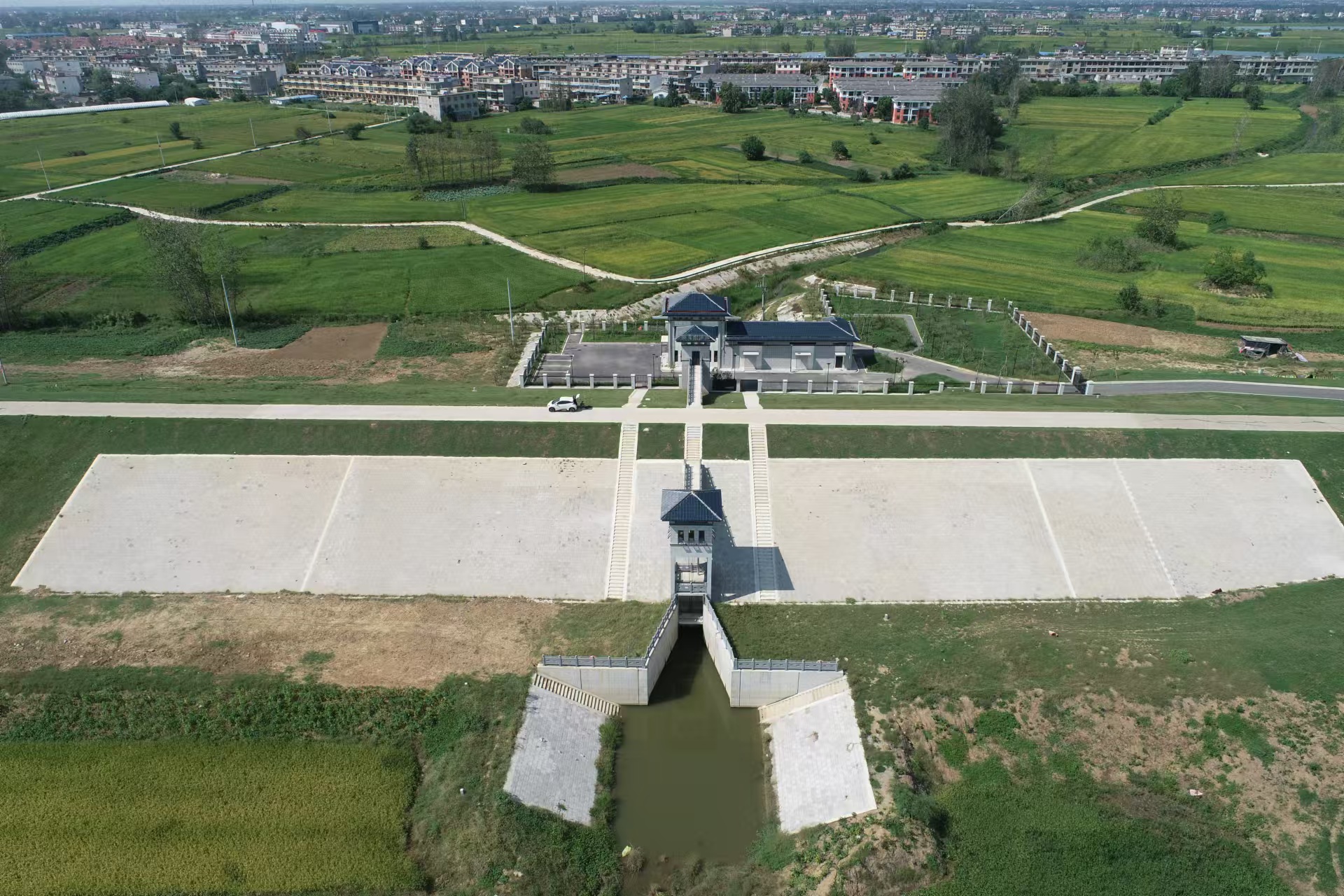 八里河閘  潁上縣八里河閘位于沙潁河潁右右堤,新建八里河閘為6孔涵洞,三孔一聯。控制流域面積483km2,5年一遇設計除澇流量264m3/s,垂直水流方向總