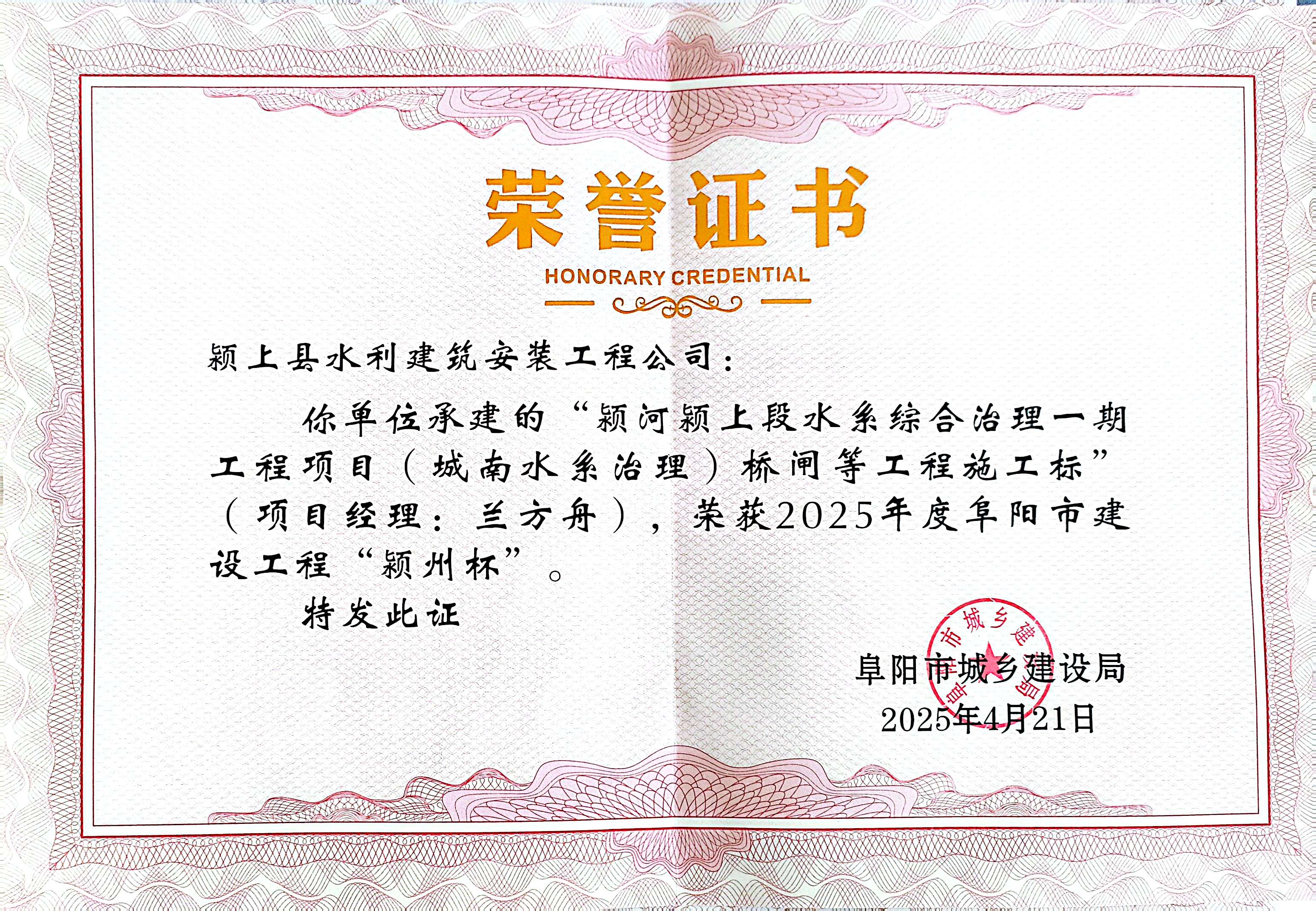 勞務資質 阜陽市建設工程"潁州杯" “守合同重信用”企業
